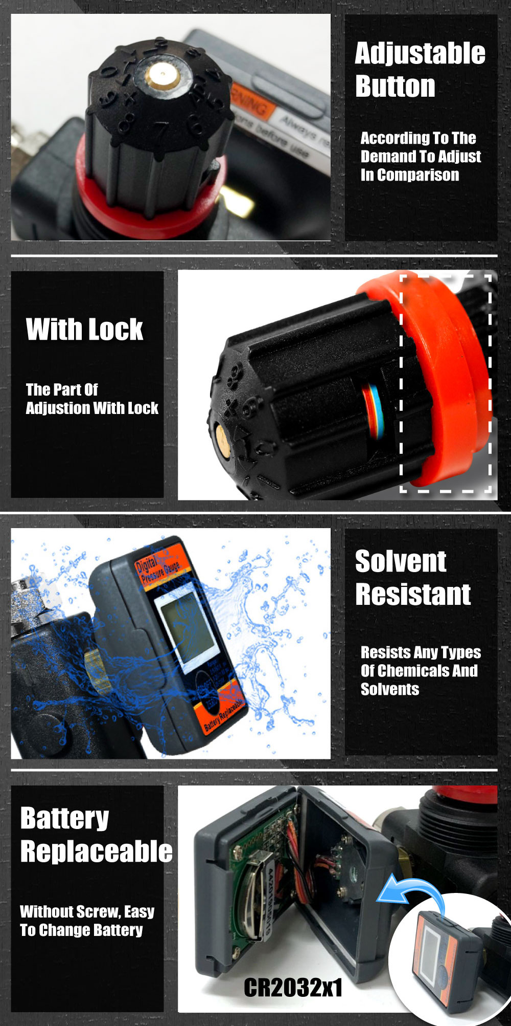 LEMATEC 1/4" Digital Air Pressure Regulator with Pressure Gauge for air tools