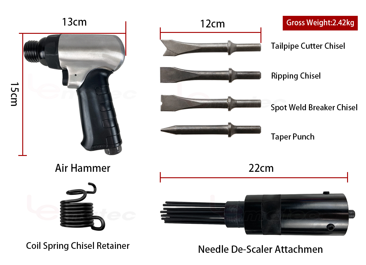 Whether you are involved in heavy-duty industrial projects or intricate metalworking tasks, the LE-AN324K Air Needle Scaler Gun With Hammer Chisel Kit is a versatile and powerful tool that meets the demands of professionals.
