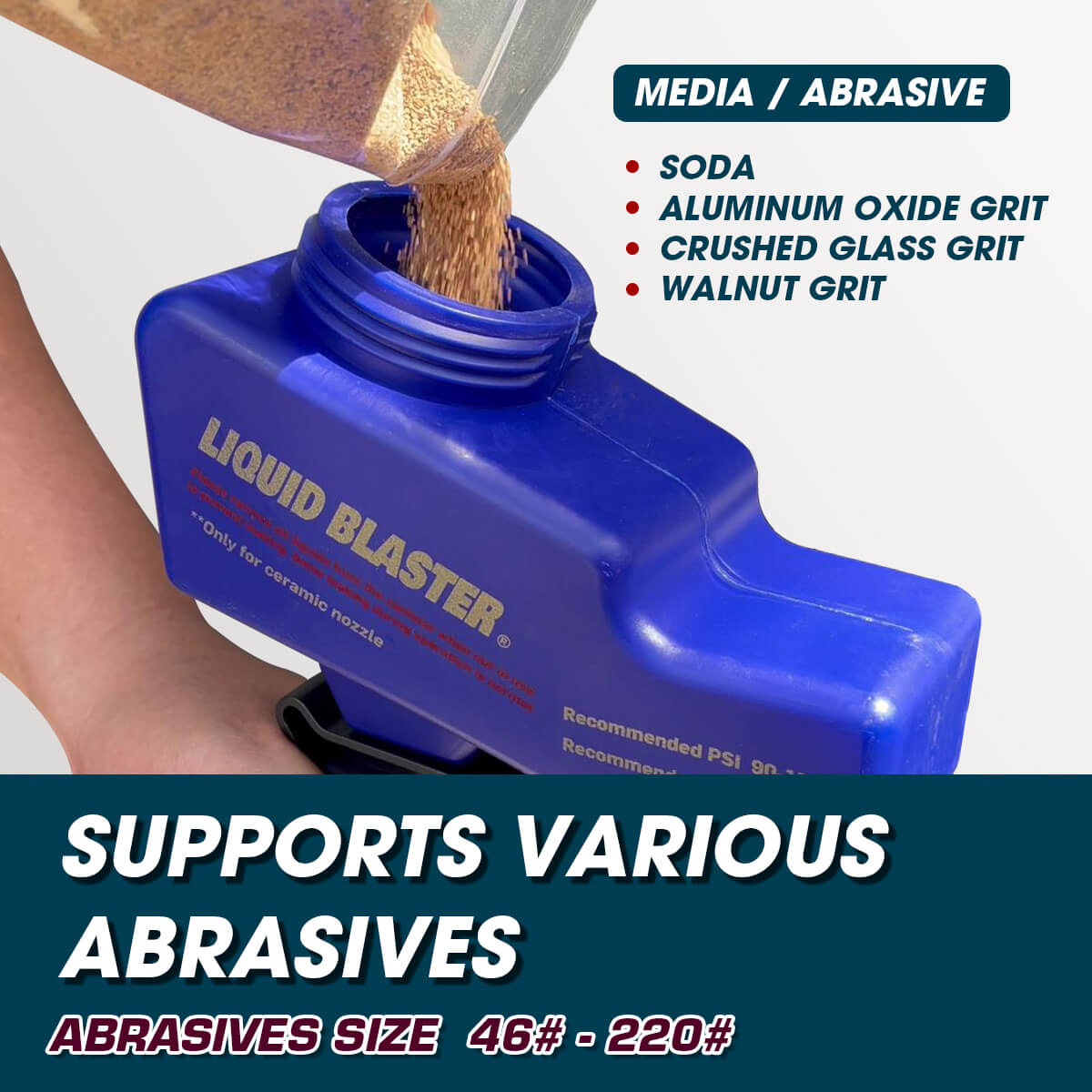 - Dry Abrasives can be used, such as soda, sand, special sand, and so on.