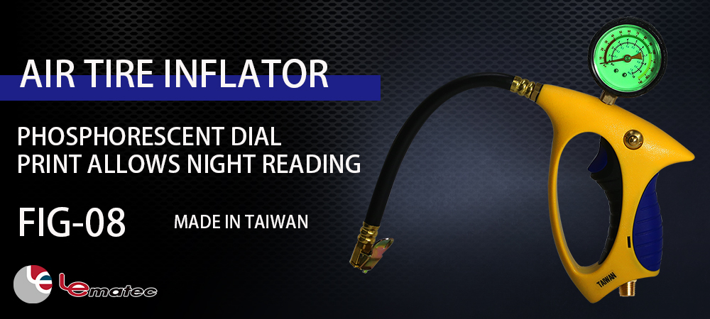 Tire inflator gun with pressure and ball needle and long copper nozzle.