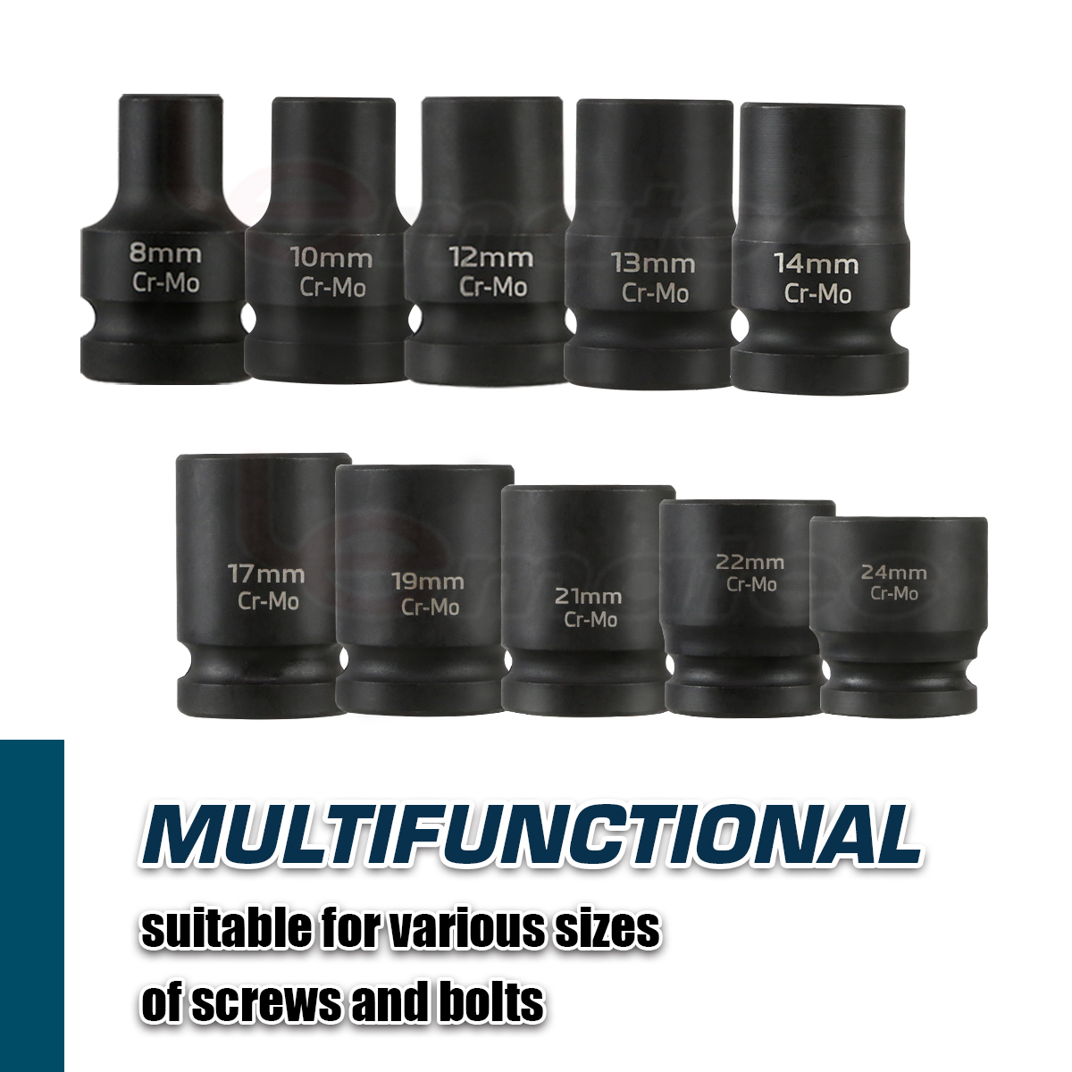 - Socket Sizes: 8, 10, 12, 13, 14, 17, 19, 21, 22, 24mm