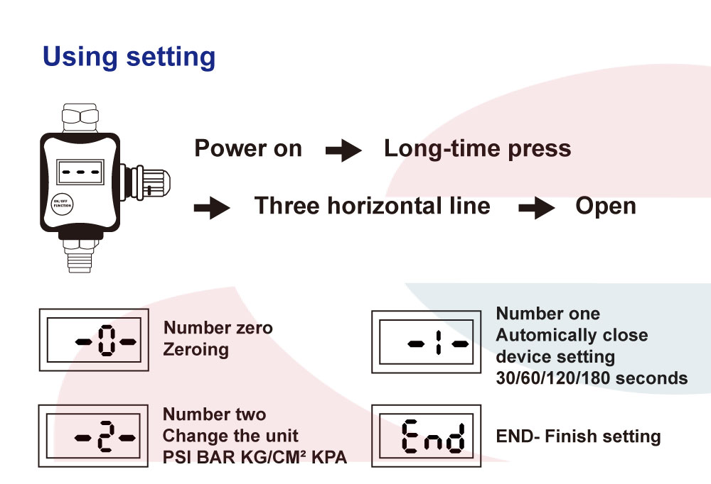 Pressure Increments:0.5PSI / 0.05Bar / 0.05kg/cm² / 5 Kpa.