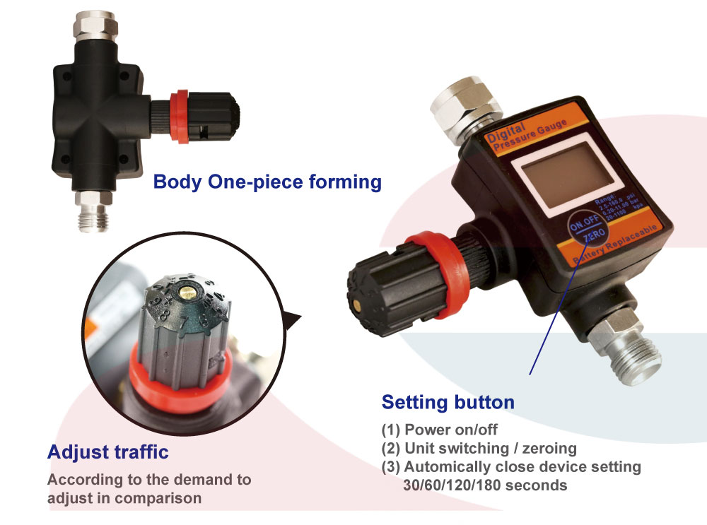 1/4" Air Flow Regualtor Valve With Digital Pressure Gauge