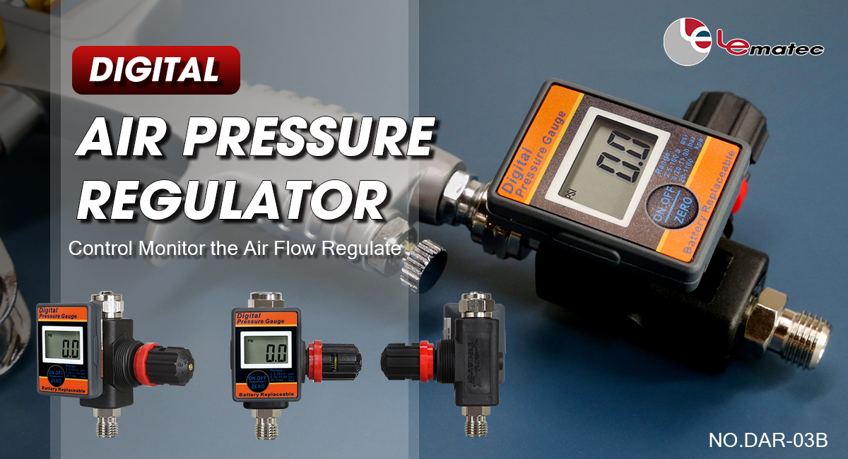 LEMATEC 1/4" Digital Air Pressure Regulator with Pressure Gauge for air tools