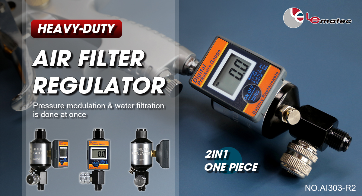 Digital Air filter with regulator for air line system, spray paint guns, or other air tools. AI303-R2