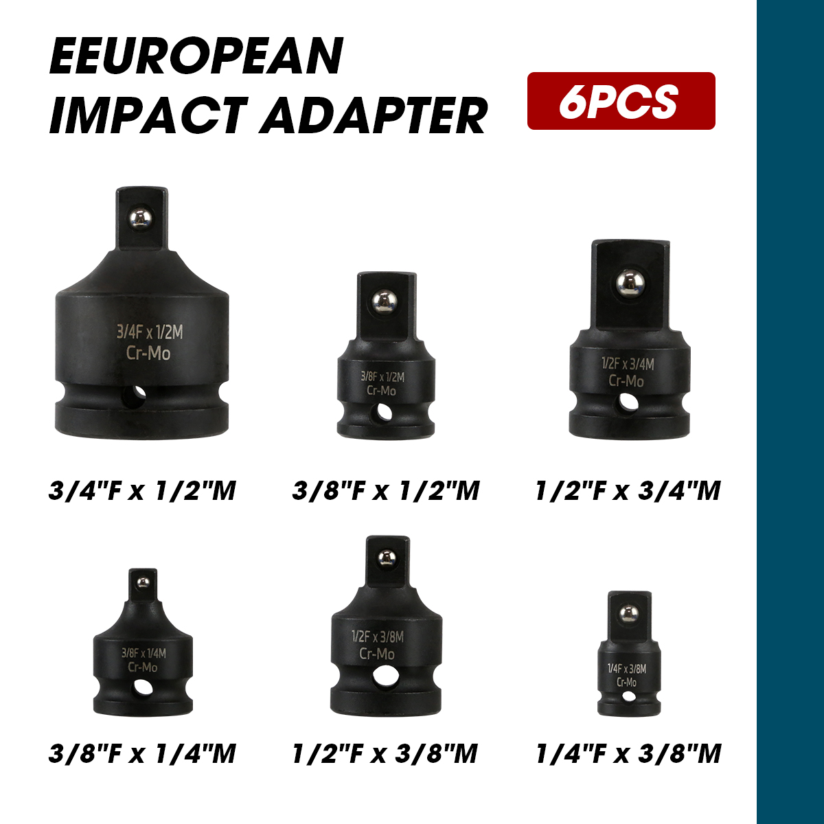 Looking to enhance your product lineup with high-quality, versatile tools? The LE-IAD-6 European Impact Adapter Set, crafted in Taiwan, is engineered to deliver exceptional performance and durability. These adapters are a valuable addition to any professional toolkit. They are made from tough CR-MO material and finished with a stylish Black Manganese Phosphate coating.
