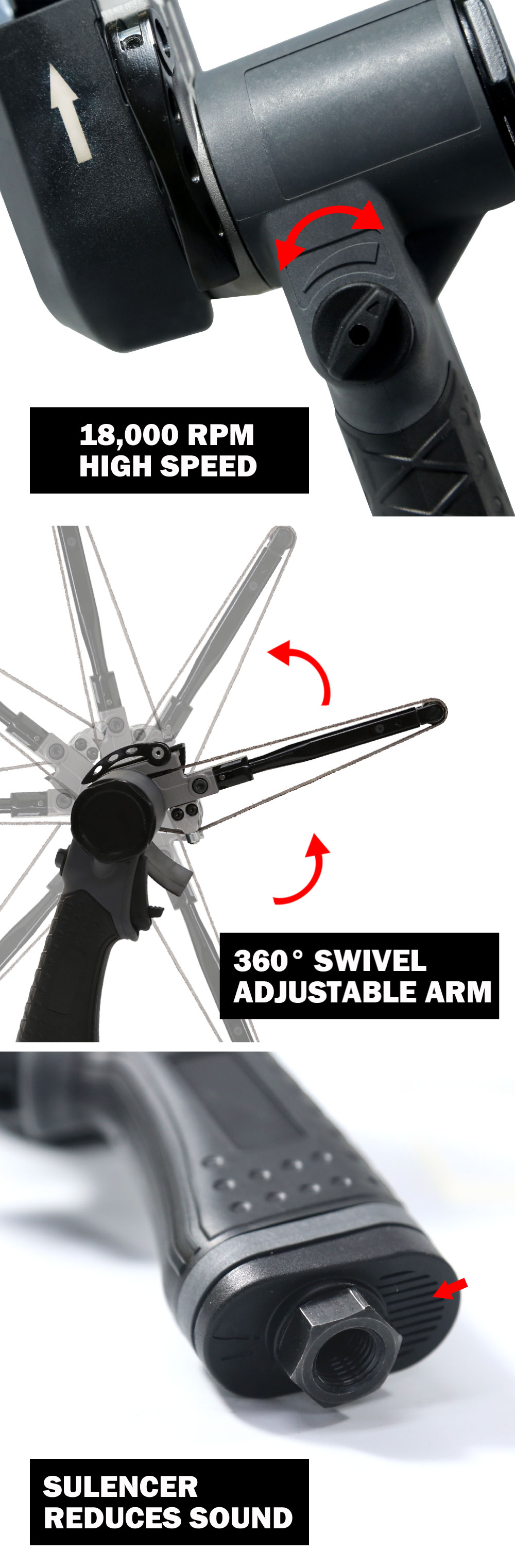 *360° swivel sanding arm can allow for sanding internal surface and narrow corners.