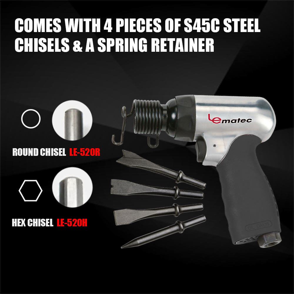 *Item No. LE-520R/H, air hammer gun with 4PC 125mm chisel, hex or round