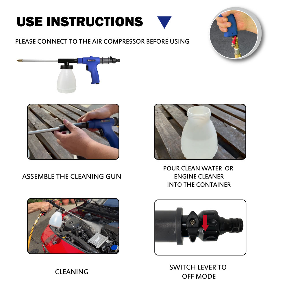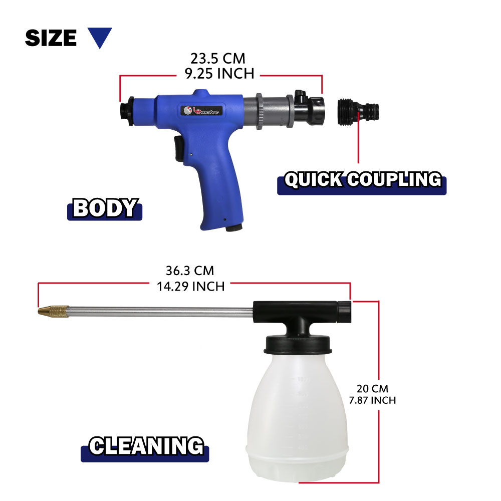 Air foam gun kits, one gun for foam, water/engine cleaning, sandblasting and blow/dust gun function.