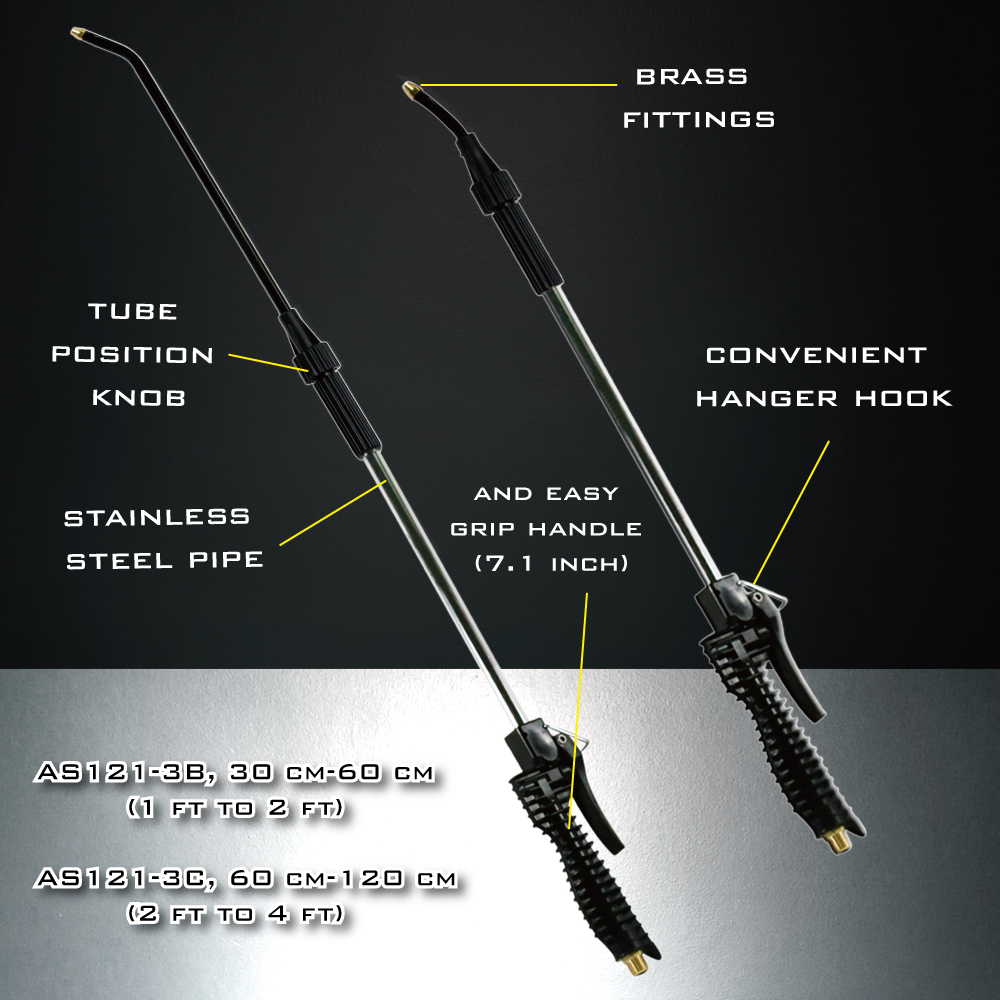 When you need to clean such areas including hard-to-reach spaces, you wish you had smaller and longer arms to do it. The 2-foot to 4-foot length of this long extension blowgun can help you clean hard-to-reach areas like gutters, ceilings, tall windows, high air-conditioning units, underneath sections of your car, pipings, and more.