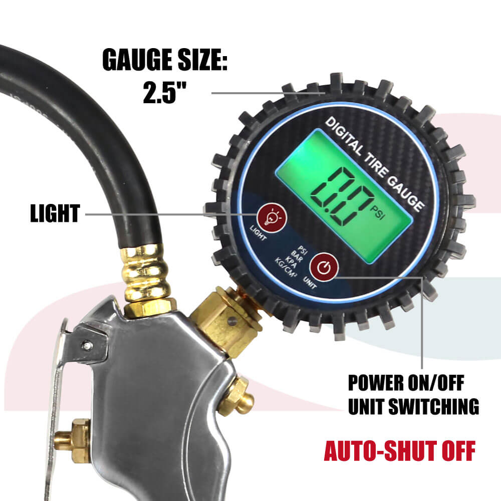 With its patented design and convenient backlight display, the Aluminum Digital Tire Inflator is a must-have tool for any professional or DIY tire maintenance enthusiast.