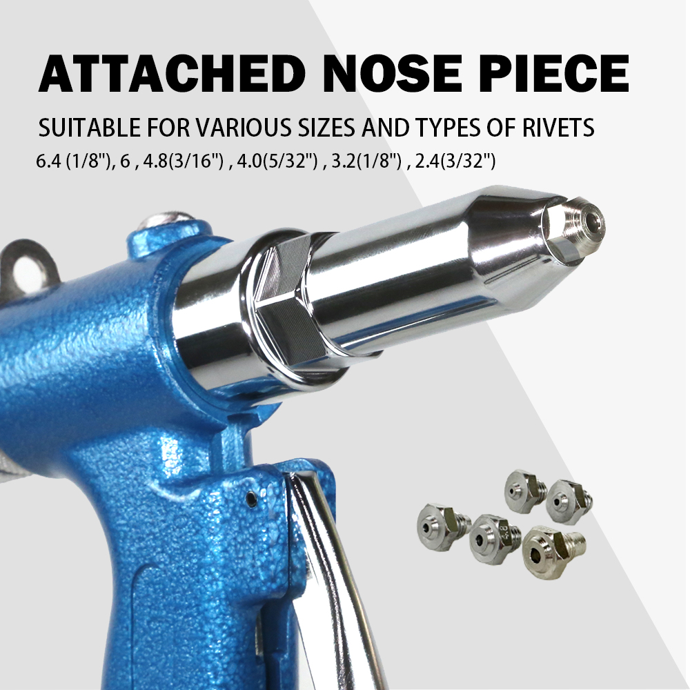Equipped with a range of capacities (2.4(3/32"), 3.2(1/8"), 4.0(5/32"), 4.8(3/16"), 6, 6.4(1/4")), the LE-AR0101 adapts seamlessly to various riveting tasks, offering unmatched versatility across different materials and thicknesses. From delicate electronic components to heavy-duty structural assemblies, this riveter handles it all with precision and ease, making it a valuable asset in any industrial setting.