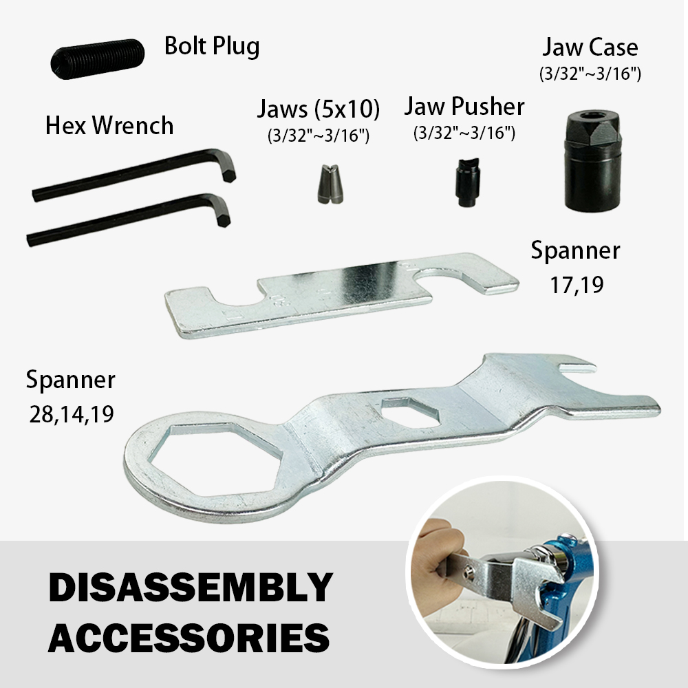 Capacity:2.4(3/32"),3.2(1/8"),4.0(5/32"),4.8(3/16"),6,6.4(1/4")