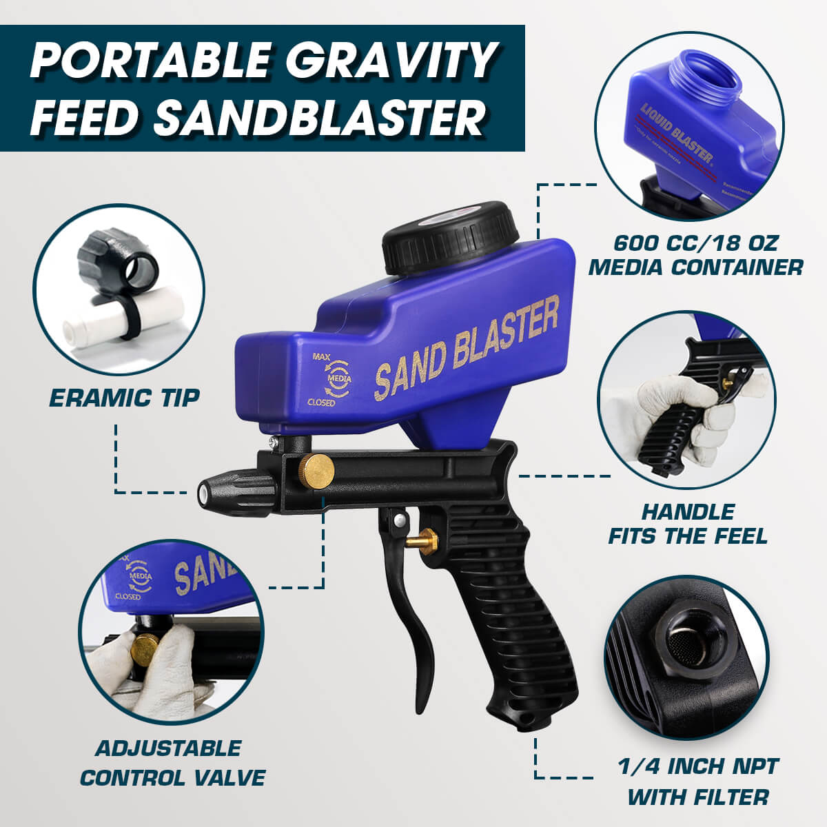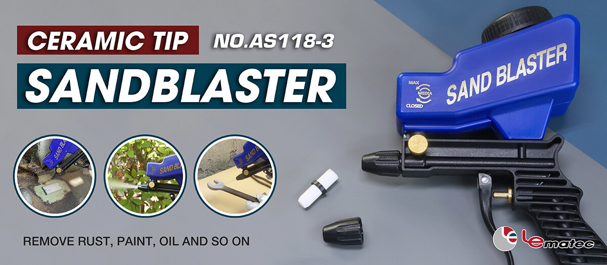 - LEMATEC sandblasting guns are the first choice for DIY enthusiasts and workshops. Its ergonomic design, lightweight construction and easy operation make it ideal for various applications. Whether you're removing rust, paint, or oil, this air tool works great and is perfect for applications like surface preparation.
