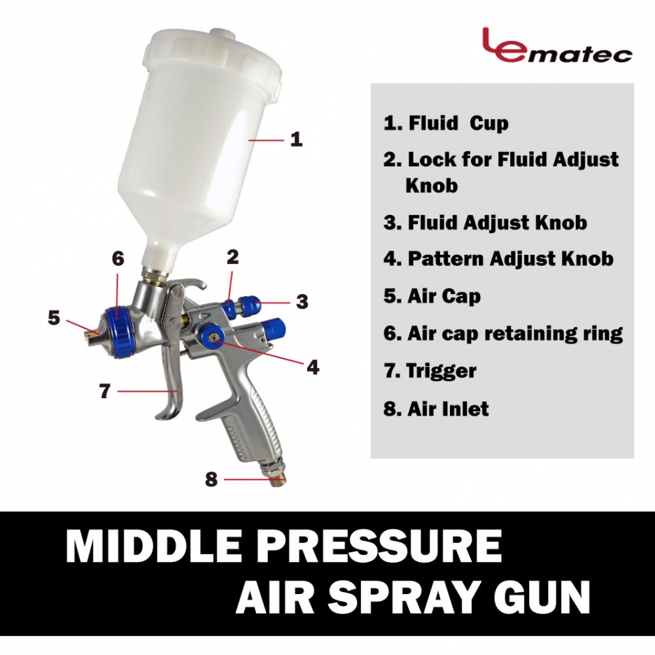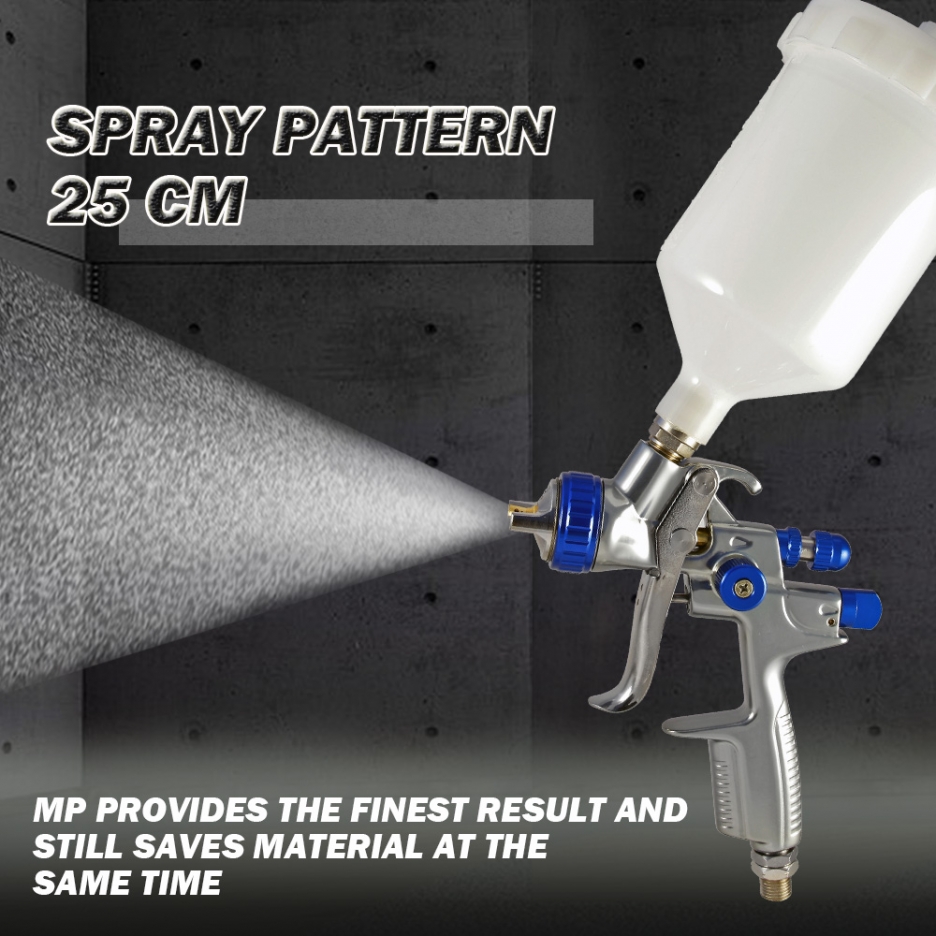 *Middle Pressure(MP) combines the advantages of HVLP and conventional spray gun: lower inlet pressure but high work rate. *MP provides the finest result and still saves material at the same time. *Spray pattern: 25 cm