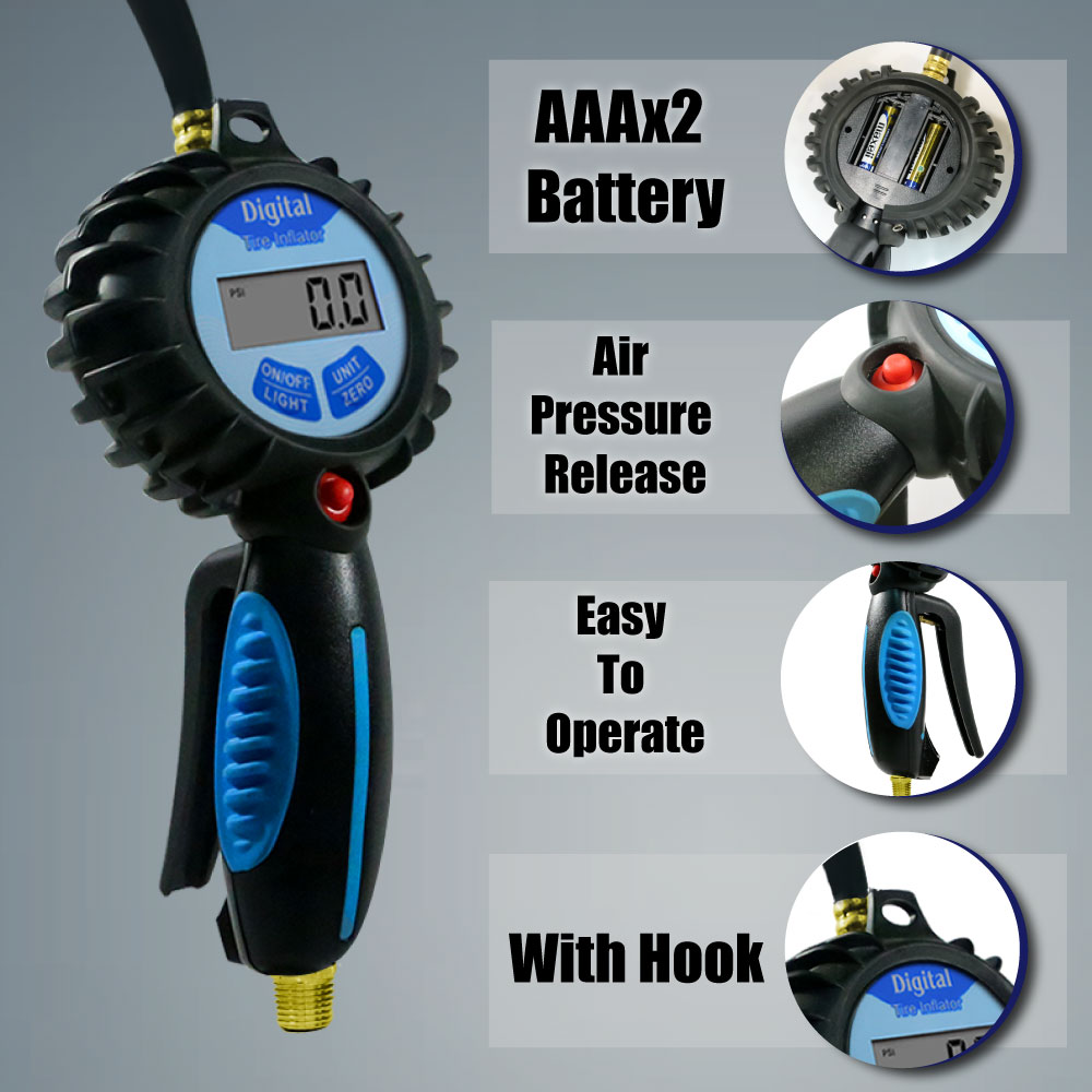 Tire Inflator / Tire Pressure Gauge / Reifenfüller Geeicht / шина инфлятор / Pistola di gonfiaggio / Pistolets de gonflage / Dæk inflation / Ringtryckmätare / Lastik hava ölçer / Lastik hava göstergesi / タイヤエアーゲージ / タイヤゲージ 3ファンクション 空気圧チェック / قياس الهواء الإطارات / مقياس الإطارات الهواء / 胎壓量錶 / 打氣量壓表胎壓槍 / 三功能專業級胎壓器 / 三用胎壓錶