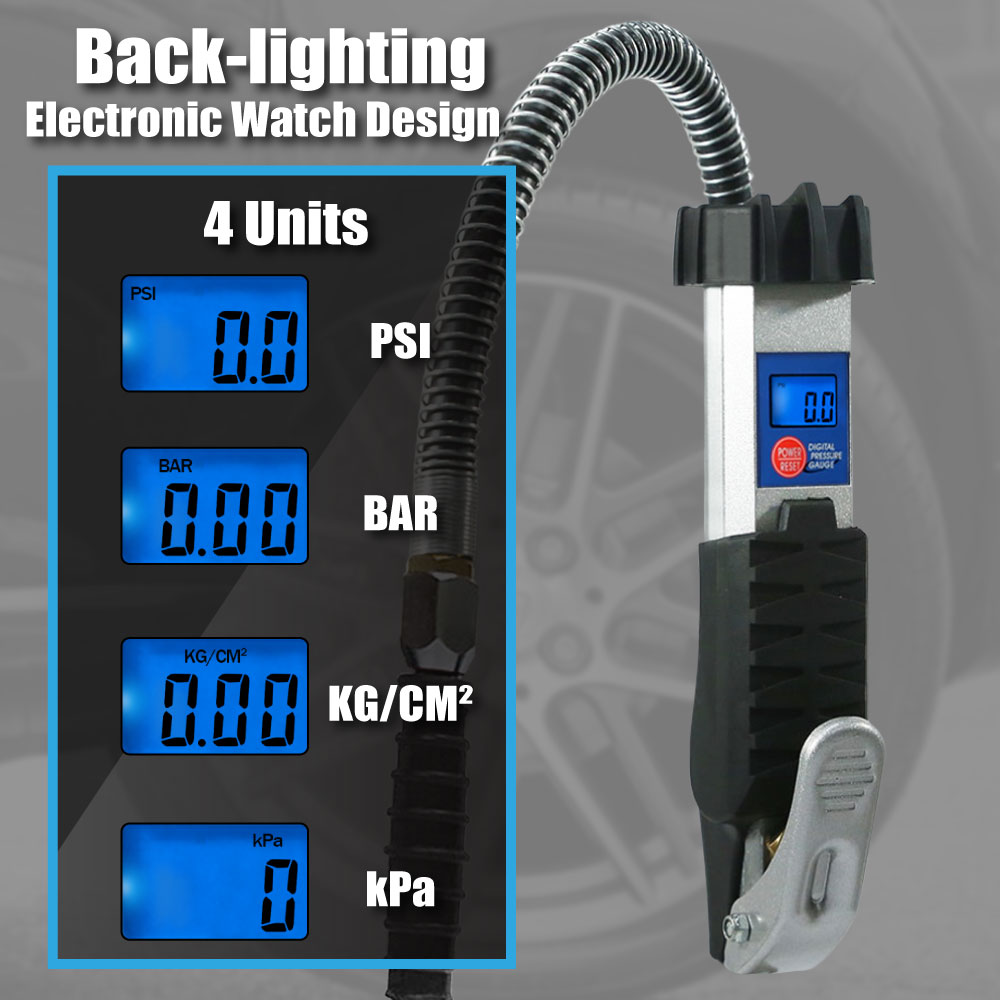 - Pressure Increments: 0.5 PSI / 0.05 Bar / 0.05 kg/cm² / 5 KPa