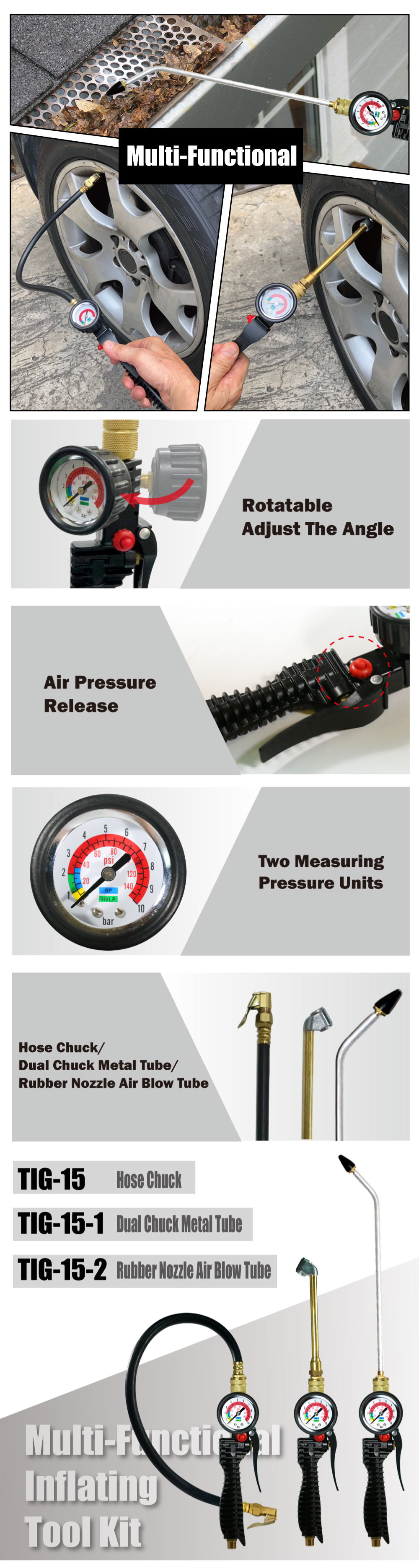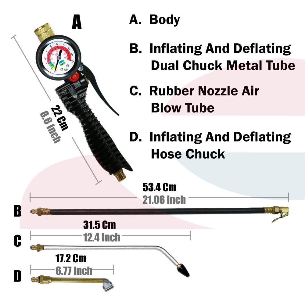 Dial Tire Inflator with quick change blow gun air tool kits